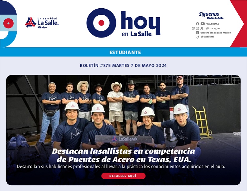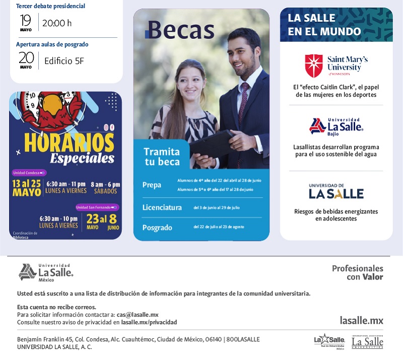 facebook.com/LaSalleMX | @LaSalle_MX | www.lasalle.mx | http://redlasalle.mx | http://ialu.org