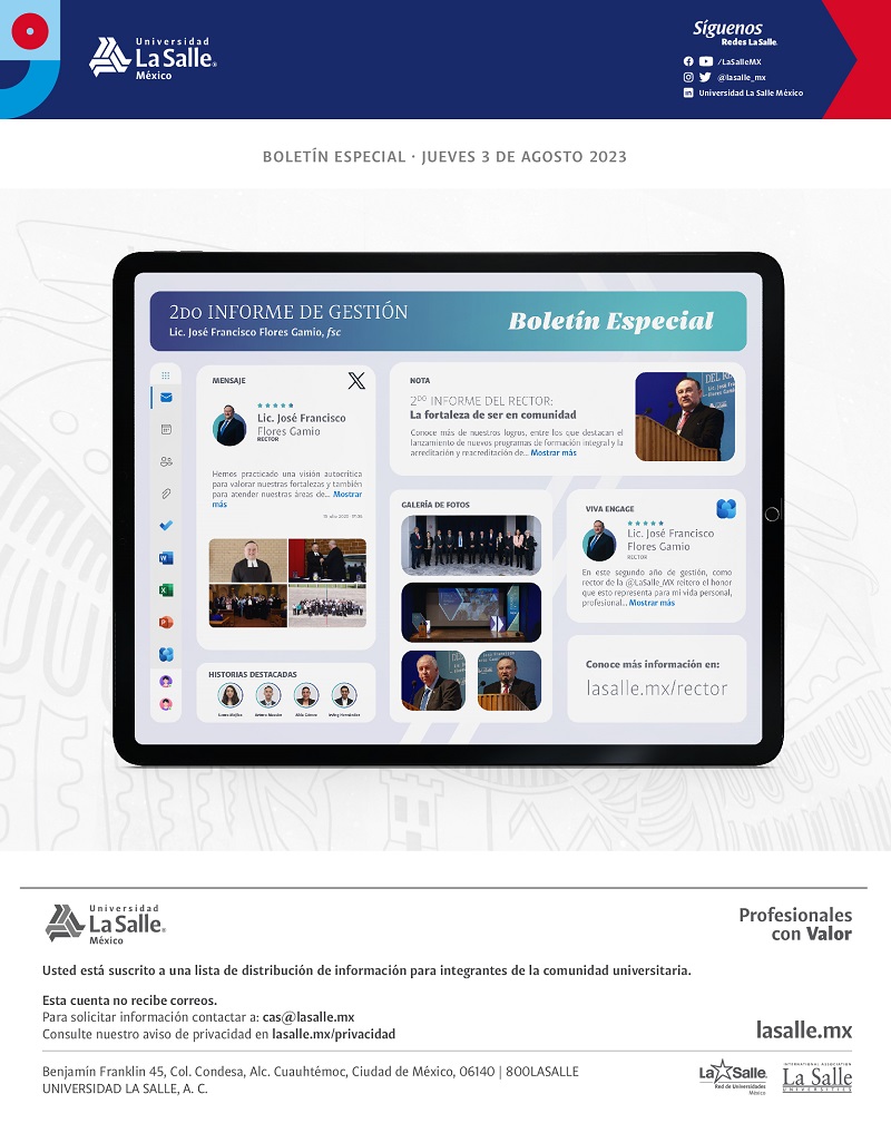 facebook.com/LaSalleMX | @LaSalle_MX | www.lasalle.mx | http://redlasalle.mx | http://ialu.org